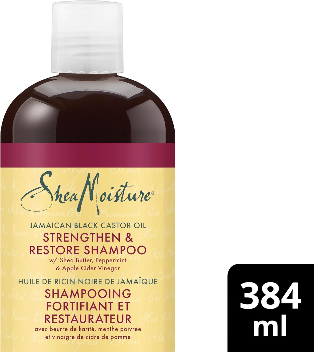 New & improved formula with a creamy lather. SheaMoisture Jamaican Black Castor Oil Strengthen & Restore Shampoo is a clarifying shampoo that gently cleanses to remove buildup. This shampoo for damaged hair is perfect for those who colour, relax, straighten, perm or heat style their hair, as well as kinky, curly or wavy natural styles. It also works great on both natural & colour-treated hair. It is formulated with Jamaican Black Castor Oil and Shea Butter as well as Peppermint Oil to help invigorate the scalp for a tingling experience. Use our shampoo with the Strengthen & Restore Conditioner for 3X* less breakage, as well as restored strength and resilience to damaged hair. All SheaMoisture hair products are sustainably produced and cruelty-free, and contain no silicone, sulfates, parabens, phthalates, mineral oil or petrolatum. Our Story: SheaMoisture is the legacy of Sofi Tucker, a pioneering mother of four and entrepreneur, who sold Shea Butter, African Black Soap and homemade beauty preparations in Sierra Leone in 1912. We honour her vision by continuing to formulate with Raw Shea Butter handcrafted by women in Africa. With every purchase, you show support of our mission to reinvest back in our communities. *vs non-conditioning shampoo